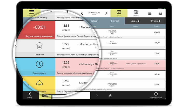 Модуль доставки iikoDelivery вместе с приложением iikoDriver полностью автоматизируют работу с курьерами. Все новые заказы автоматически попадают в систему и назначаются на свободного курьера.
