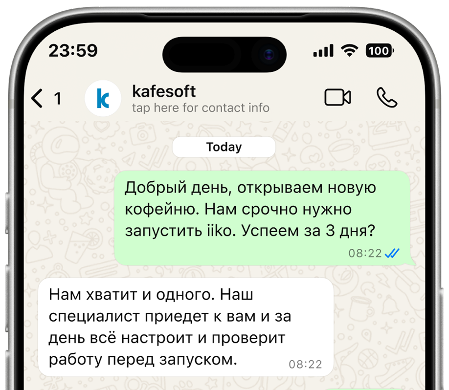 Мы внедряем iiko под ключ в 4 этапа: анализ, техническая настройка, запуск и сопровождение. На каждом этапе за вами закреплён персональный менеджер, который контролирует сроки и качество работ.