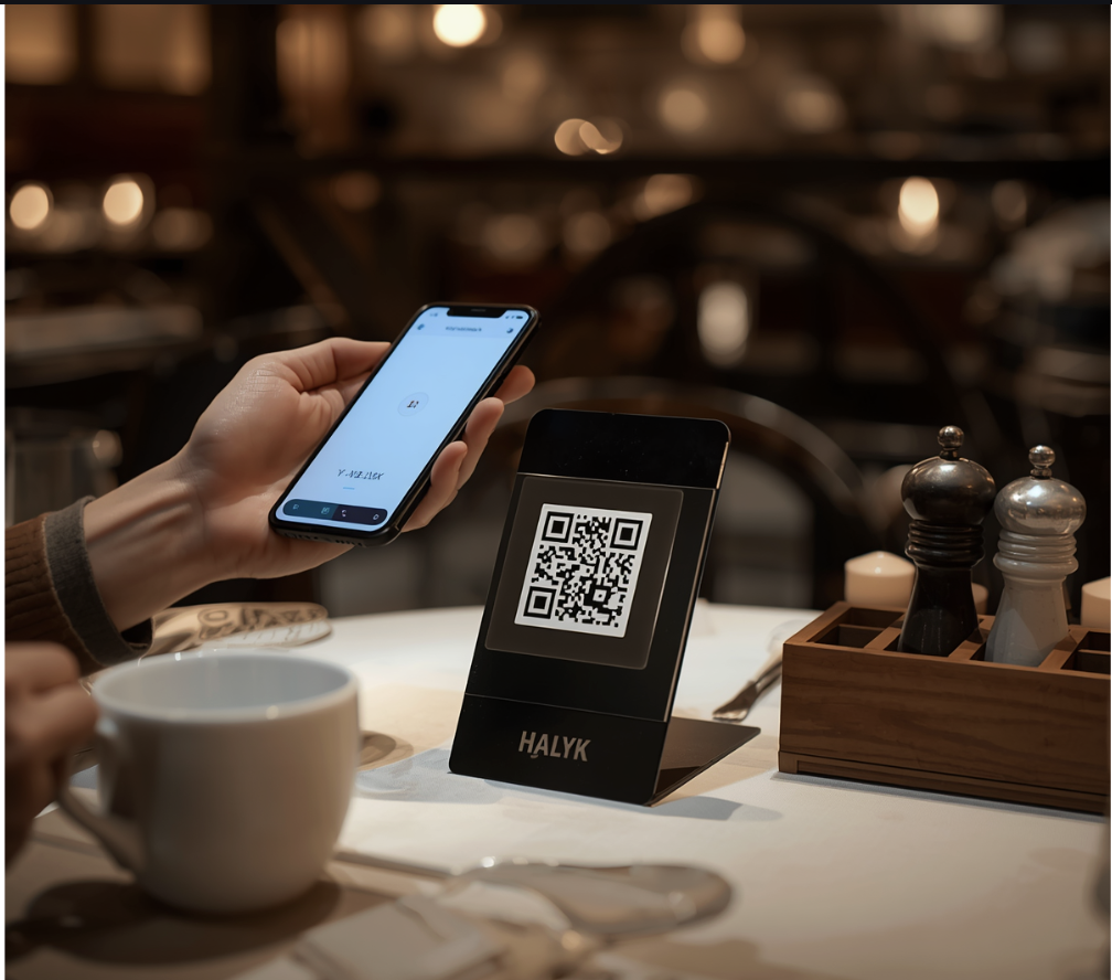 Приём безналичной оплаты от гостей через QR-код у столика в приложении Halyk